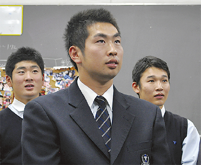事前に同校野球部の若林弘泰監督との話し合いで「3位以下の指名なら大学進学」と定め、臨んだ運命の日。勝俣君は、ドラフト会議が始まった午後5時から野球部員らとともに、教室でテレビ中継を見守った。今年8〜9月に開催されたU-18W杯で一緒に戦った高橋純平君(県岐阜商)らが続々と上位指名を受け、自身もその瞬間を待った。だが、各球団の4巡目指名が終了した時、勝俣君は監督らと会場を退出。その後、1人で姿を現した若林監督が重い口を開いた。