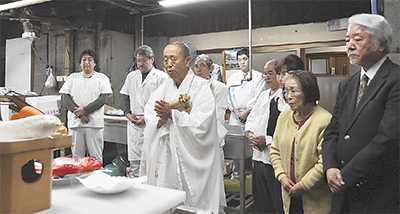 小田原市内の老舗料理店「だるま」で12月14日、魚供養が行われた。