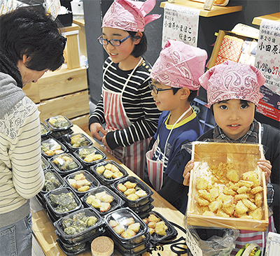 かまぼこを使った新メニューを小学生が考え、店主が形に。それを子どもたちが消費者へ届ける―。ストーリーのある商品が3月17日にハルネ小田原で販売され、にぎわいを見せた。