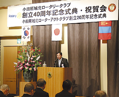 小田原城北ロータリークラブ(城北RC・木村賴弘会長)が4月2日、湯本富士屋ホテルで「40周年記念式典」を開催し、来賓や韓国・大邱松林RCやモンゴル・ウランバートルRCなどをあわせ、約120人が出席した。
