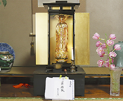 観音開きの厨子は15kg程だったが、背負う人も高齢化したため、昨年軽量化を図り8kg程に。本尊の金箔は数年前に貼り換えたものの、修行僧が背負ってきた地蔵が受け継がれている。