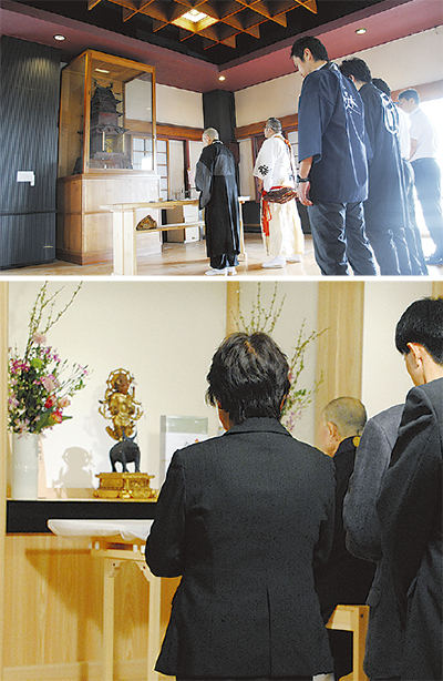 満開の桜が風に舞い始めた4月9日、蓮上院の濱武快晃住職(76)により「魂入れの儀」が、新しく完成した摩利支天像安置空間で執り行われた。
