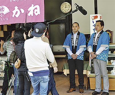 4月中旬から5月にかけて撮影され、かまぼこ店をはじめ神社や漁港、小田原城などでカメラがまわった=写真。番組スタッフは「散策にぴったりな季節なので、次の日に行きたくなる情報を集めました」と話した。