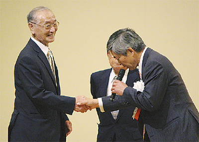 式の最後に御礼のあいさつに立った薮田勉会長は、自身が社長に就任した当時、支えてくれた5人の社員の名を挙げ、感謝の言葉を述べると、こみ上げるものを抑えきれない一幕もあった。