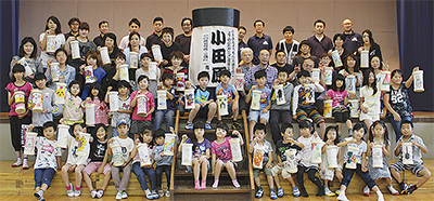 勝俣祥充さん(70)は孫の暖陽(はるき)君(仙石原小4年)、旦陽君(5)と一緒に参加。「貴重な経験をさせてもらい、ありがたかった」と喜んだ。馬場会長は「提灯の絵をみんな、真剣に書いてきてくれ良かった」とほっとした様子で笑顔を浮かべた。