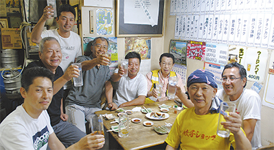 「地元の明るいニュースだから」と、オーナーの桐生照一さんは閉店時刻を過ぎても祝賀会のために店を提供。「お酒がすすみますねぇ」と、店内からはいつまでも明るい笑い声がもれていた。