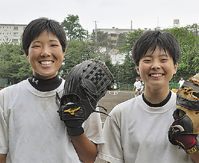 酒匂中出身で、厚木商業高に進学した川之上実桜さんと遠畑さくらさん(ともに2年)は、女子ソフトボールで2年連続出場する。エースピッチャーの川之上さんは「テンポのいい投球をしたい」、ファーストの遠畑さんは「バッティングで貢献したい」と語り、「目標は日本一」と口を揃えた。