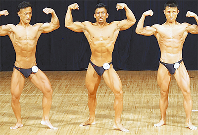 県内外から33人が出場したこの大会。規定のポーズをとり、筋肉の大きさやカット(筋目)、バランスなどの要素が審査され、勝敗が決定する。