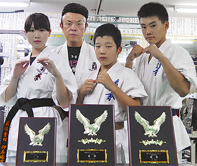 市内田島にある伊与田道場の3選手が8月14日、平塚市総合体育館で開催された「全国ジュニア空手道選手権大会 清武会カップ2016」に出場し、皆本丈君(湘光中1年)と宮川太陽君(アレセイア湘南高1年)が優勝、飛永彩乃さん(秦野南中2年)が3位となった。