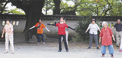 ラジオ体操で人の輪作り