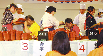 第31回全日本わんこそば選手権が11月6日に岩手県で開催され、蓮正寺在住で会社員の井本英明さん(45)が4連覇を達成した。