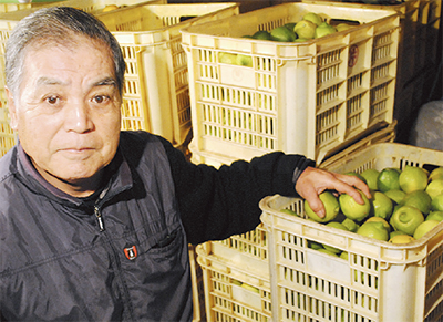 農家の廣井博直さん(73)=写真=は、「労力の配分や販売期間の長期化につながる」とし、年間2tの収穫高の約2割をグリーンレモンとして早期に収穫する。食卓に常時レモンがあるという廣井さんは、「醤油の代わりに天ぷらや焼き魚にかける。塩分も控えられます」と活用法を話した。