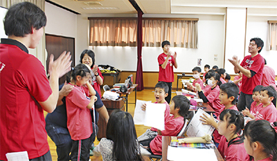 スポーツ選手や芸能人として活躍、大きなサメを釣る、発明をするなど、さまざまな夢を報じる新聞が完成すると、夢発表祝賀会として、一人ずつ自身の新聞を紹介。他の子どもたちから「オメデトー」と拍手と歓声で夢の実現を祝ってもらう。恥ずかしそうに自らの夢を発表する子ども達は、仲間たちの声援を受けると、表情が一変。満更でもない笑顔に変わっていく=写真。夢の実現に向け、やる気が漲っていくのが伝わった。