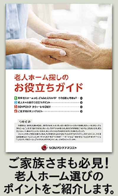 今なら電話で問合せをすると、「老人ホーム探しのお役立ちガイド」をプレゼント。資料請求、介護に関する相談などは下記へ。