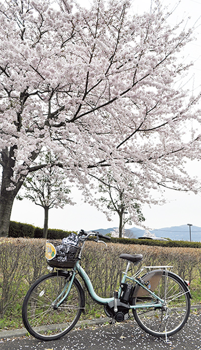 「桜はまだか」。自転車の貸出場所の一つ小田原駅東口駐車場へと向かう。お堀端通りには真新しい制服姿の学生たち。受付の際、記者は山道を視野に、迷わず電動自転車を選択。花見へ、いざ――。