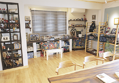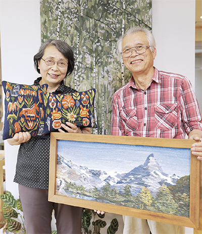 妻が織れば、夫・好胤(よしたね)さんは自分の「得意」でサポート。タペストリーの木枠を作ったり、座りながら手元で作業ができる織り機を作る。織り機は誰に習うわけでなく、作っては妻の使い勝手を聞き、さらに使いやすさを求める。展示会では好胤さんの木工作品も展示。悦子さんは「北欧ならではの柄や、色を楽しんでほしい。織物や雑貨、木工品を通して北欧デザインを感じて頂ければ」と話した。
