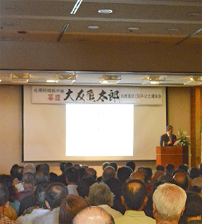 西大友出身で「札幌開拓の祖」と呼ばれる大友亀太郎を顕彰する講演会が、5月27日に尊徳記念館で行われた。定員を大幅に上回り、会場外に人が溢れる盛況ぶりをみせた=写真。