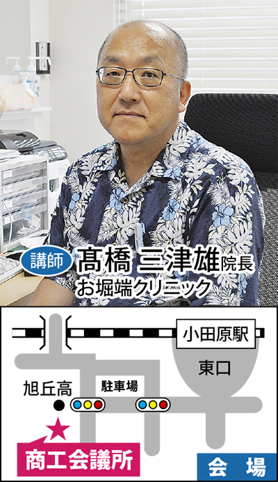 主催のメットライフ生命保険(株)小田原エイジェンシーオフィスが、認知症への見識を深めてもらおうと企画した今回のセミナー。日本認知症学会専門医でもある、お堀端クリニックの高橋三津雄院長が登壇する。