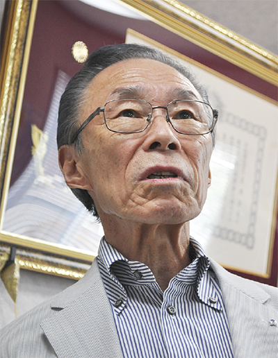 5月11日には、皇居で天皇陛下に拝謁した岸岡さん。当日は、38年前に父親が使った勲章用取り付けピンを胸にさして臨んだ。「親父に続く想いで地道に活動してきてよかった」。奇しくも父と同じ古稀で受章した岸岡さんは、柔和な笑顔を浮かべた。