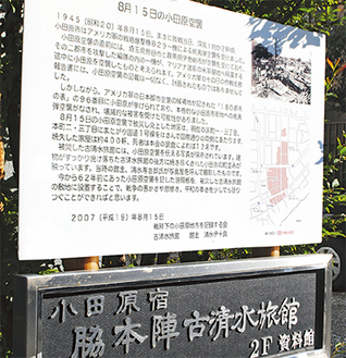 小田原空襲の痕跡を残そうと、同会は被害を受けた旧古清水旅館の協力により、当時の様子を記した説明板を2007年に本町の現場に設置。「語ってくれる人がいるかぎり」と聞き取りも続け、年2回発行の冊子『戦争と民衆』などにまとめている。「記録がないからこそ証言を大事に、オーラルヒストリーとして後世に伝えたい」。来夏の出版に向け、現在は書籍の編集作業にあたっている。