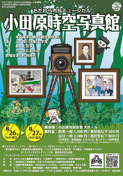 市民会館大ホールで8月26日(土)、27日(日)に「おだわら市民ミュージカル 小田原時空写真館」が公演される(=桐生真希役を人物風土記で紹介)。開演は26日が午後6時、27日は午後2時。市民出演者が劇作家、演出家と作る小田原を舞台にしたオリジナル作品。
