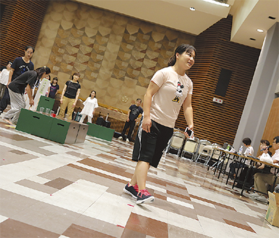 「カミからシモに流れて」「緑のテープがバミリですので」―。8月5日の市民会館には演技指導や舞台特有の指示が響き、オーディションで選ばれた市民が舞台の出演者として歌い、踊り、演じていた。