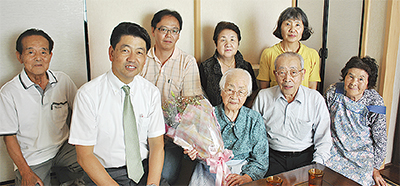 久野在住の遠藤さんが、小田原市民では最年長となった。敬老の日に合わせ、恒例行事となった最高齢者のお祝いで、加藤市長が初めて遠藤さんを訪問。家族と暮らす自宅には、親戚や自治会関係者らも集まり、長命を祝福した。