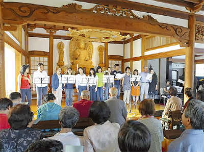 小八幡の三寶寺では約30年前、仏をまつる「内陣」と呼ばれるスペースを板敷にし、ステージとして活用しやすいよう本堂を改築。今年20回目を数えるコンサート「山近音楽座」は毎回多くの観客を集め、お馴染みのイベントとして定着した。竹石友威住職は「私が幼い頃、寺は選挙の投票所や予防接種会場、移動図書館の役割もあった」とし、「まさに何かあった時の『かけこみ寺』として、地域に閉鎖的ではいけない」と本堂の地階にはカフェやアートギャラリーも併設している。