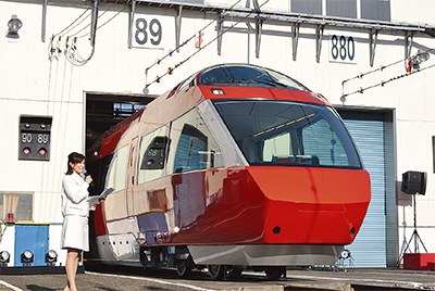 小田急電鉄(株)が12月5日に新型ロマンスカー70000形・GSE(7両・定員400人)を相模大野の総合車両所で発表した。