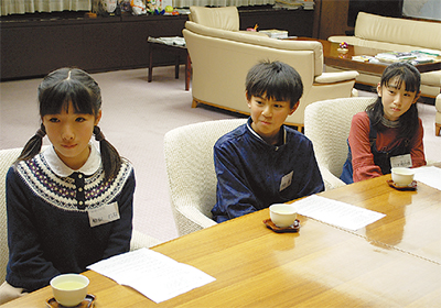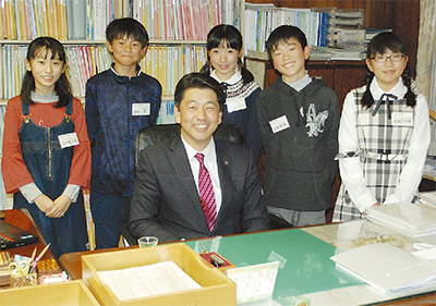 小田原市内の小学6年生5人が、加藤憲一市長にインタビューした。