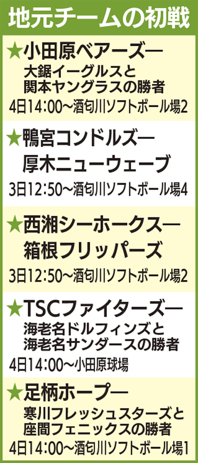 3日午前8時から小田原球場での開会式に続き、市内各会場でプレイボール。大会は4日(日)に2回戦、10日(土)に3回戦・準々決勝、11日(日)に準決勝・決勝が予定されている。天候により順延の場合あり。