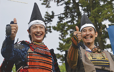 合田さんは小田原ふるさと大使で、撮影中の映画「―地上の星―二宮金次郎伝」でも主演するなど活躍中。高嶋さんはNHK大河ドラマ「真田丸」で氏政を演じたことをきっかけに、昨年の武者行列に初参加した。昨年の同祭りは過去最高の25万人(主催者発表)の来場を記録した。