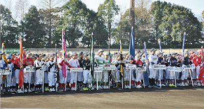 県内59チームが参加する「小田原松風ライオンズクラブ旗争奪少年野球大会」の開会式が3月3日、小田原球場で行われ、市内各グラウンドで熱戦が繰り広げられている。