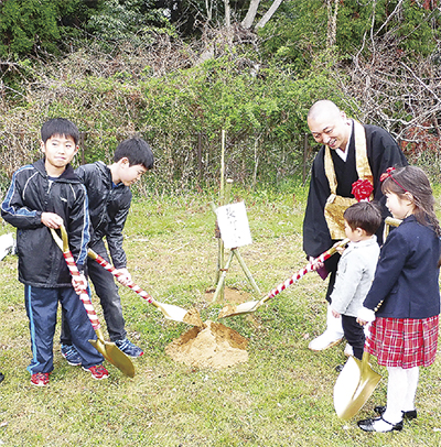 稲葉正則の娘、仙姫は1677年、仙台藩4代藩主・伊達綱村に嫁いだ。綱村が今年6月で300忌を迎えるにあたり、菩提寺の大年寺や仙台市内ではさまざまな事業が実施されている。また、大年寺の住職を武内住職の実弟、邦生さんが務めている縁もあって、紹太寺から苗木5本が寄贈されることとなった。