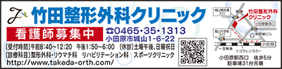 竹田整形外科クリニックが城山に開院して12年。このほど、院長の竹田誠さん(72)の息子で整形外科医の竹田崇朗さん(42)が副院長に就任した。小田原市立病院整形外科部長を23年間務めた後も小田原の地域医療に携わってきた院長と、相模野病院整形外科部長を経て父親の後継を担う副院長を取材した。
