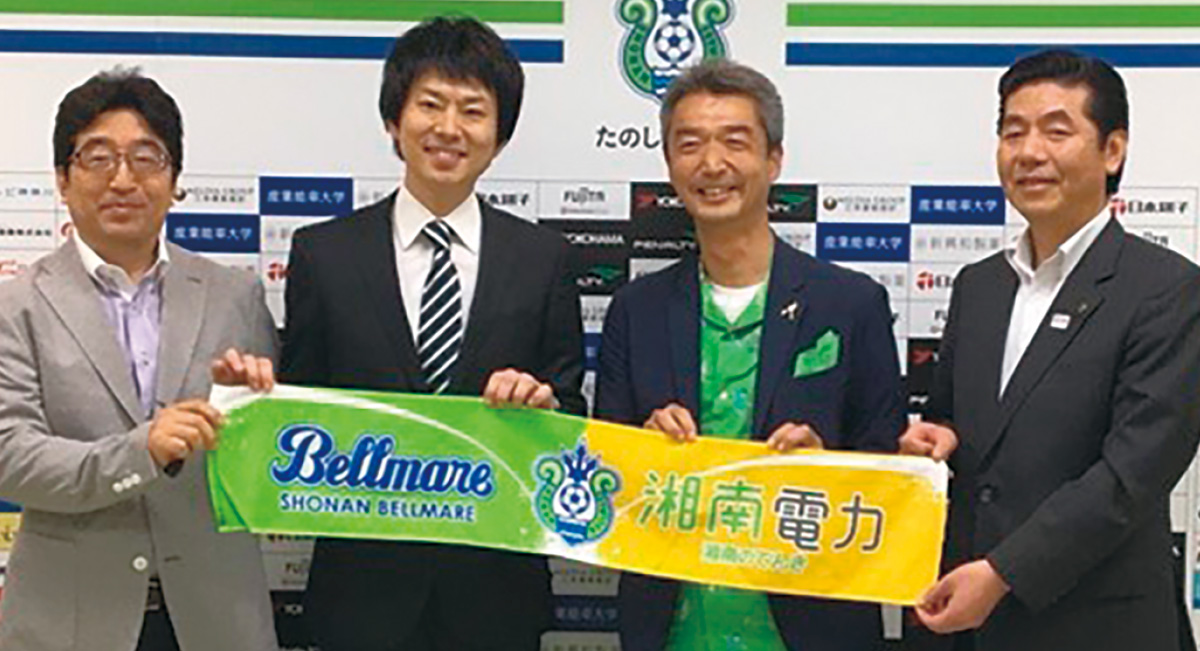 この契約締結により同社が取得した「対象発電所の愛称付与」の権利を活用して5月19日、同社は発電所名に湘南ベルマーレの名前を冠したことを発表した。原社長は「ベルマーレは元々当社の株主でもあり、クラブを通じた地域活性化への取り組みの一環にもなるのでは」と話した。また、同社ではこれまでも売上の一部をベルマーレの活動支援に還元しており「今後はベルマーレ+神奈川県+湘南電力の三位一体によるさまざまなイベントを通じて、再生可能エネルギーのことをもっと知ってもらえるよう活動していきたい」と意欲を示した。