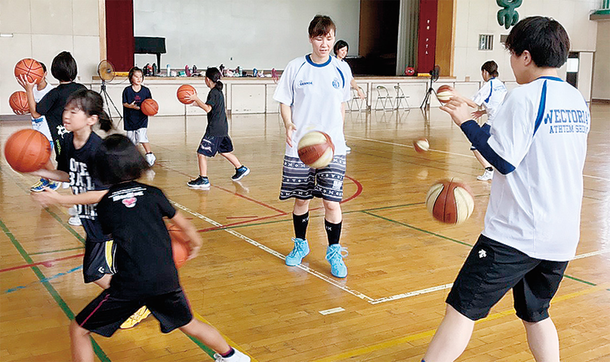 ウィクトリアスのメンバーは全国大会出場経験がある人も多い。当日はそんな選手たちが年代別に分けた参加者に、わかりやすく、楽しくバスケのレッスンをする。