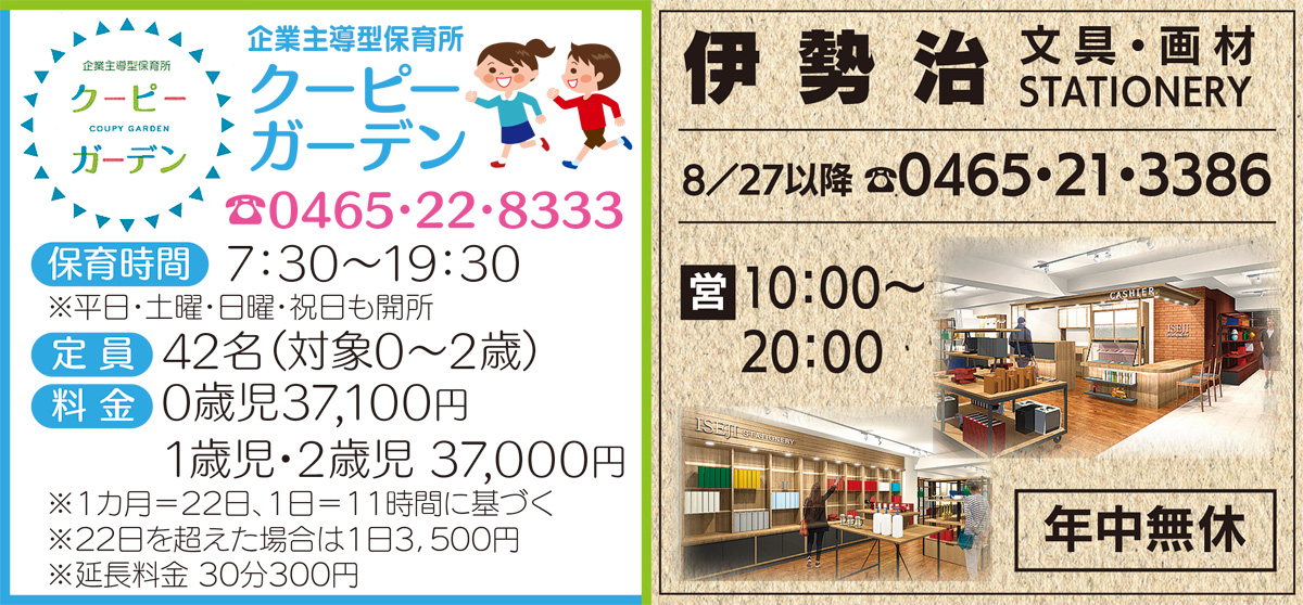 小田原銀座通り沿いに建設中だったマンション「セルアージュ小田原銀座通り」が7月に完成。1階に待望の「伊勢治文具店」、2階に保育所「クーピーガーデン」が8月27日(月)にオープンする。