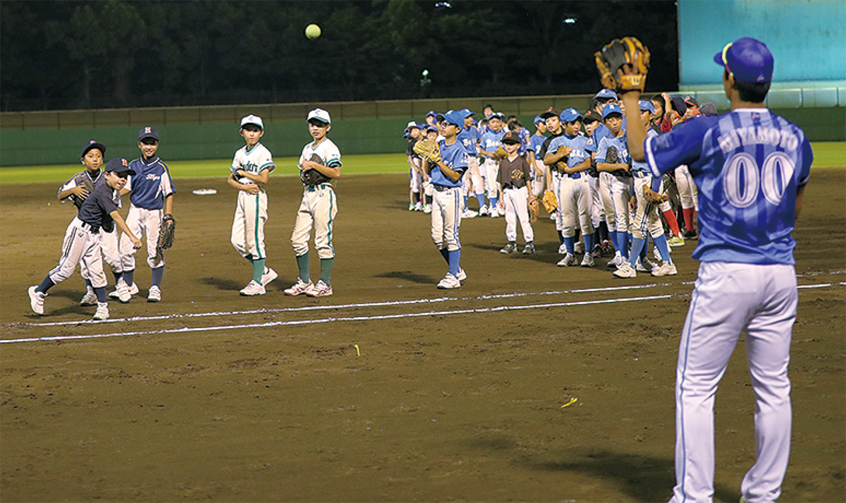 小田原ベアーズのナインは「かっこいい」「思ったより大きい」「いい匂いがした」と声を弾ませ、鴨宮コンドルズの主将・宇佐美海大(みひろ)君(千代小6年)を含めたメンバーはキャッチボール後に「プロ野球選手を生で見る機会が少ないからうれしい。早速、明日からの試合に活かしたい」と意気込んだ。目を輝かせる野球少年たちに、試合には敗れたが選手たちにも次第に笑みがこぼれた。