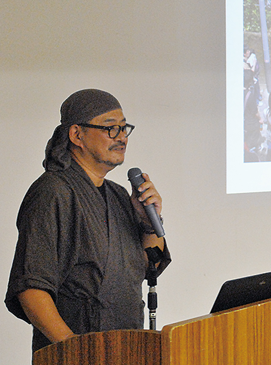 来年3月の「全国まちあるきフォーラムin小田原」に向けたプレイベントの一環で講演会は3回目。この日の講師はNPO法人長崎コンプラドール事務局長の田中潤介さん=写真。低迷していた長崎市の観光客数を増加させた、まち歩き観光の仕掛け人の一人だ。