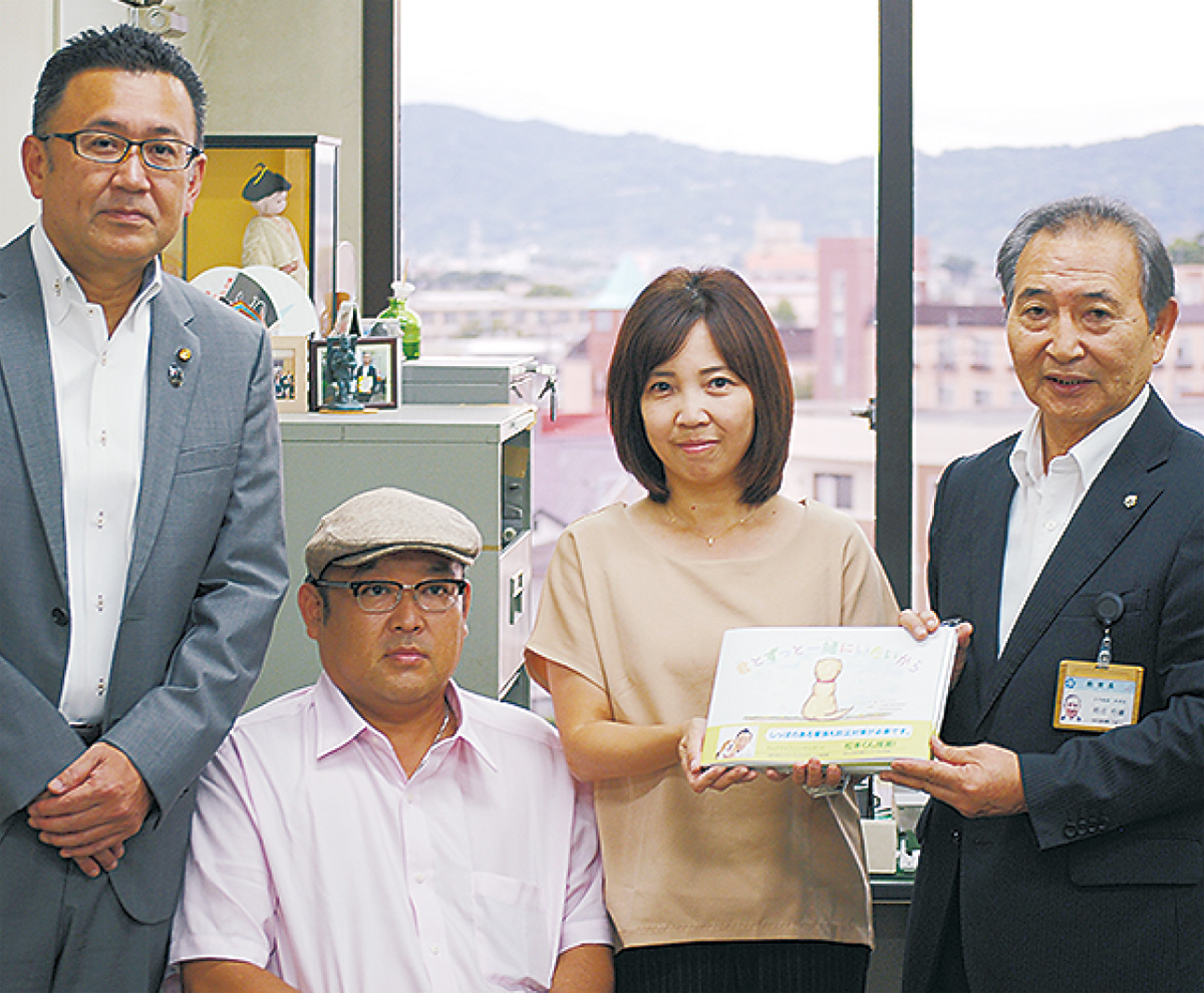 出版にはクラウドファンディングを活用し、1000部を発行。市内ほか、県西地域の小学校や幼稚園にも順次配布を進める。寄贈を受けた市教委の栢沼行雄教育長は、「ペットと人間との関わり方や、命に責任をもつことが学べる絵本」と感謝した。また、中川さんは「犬や猫を飼うと、こういう現実もついてくることを子どもたちに知ってほしい」と話していた。