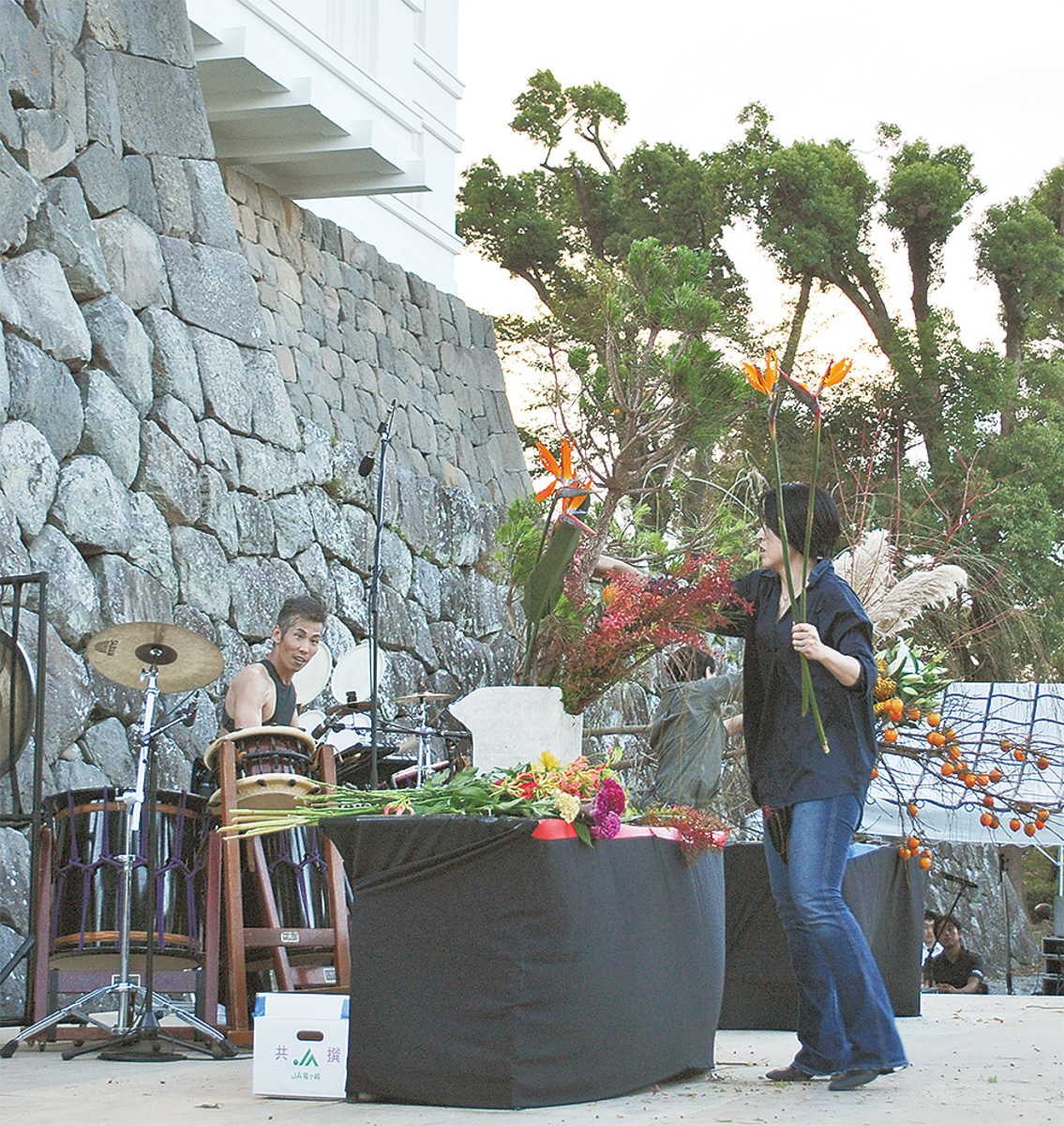 国内各地から集まったフローリストと華道家、フラワーデザイナーの6人が対戦形式で、即興で作品を作り上げる「花いけバトルin小田原城」が10月6日、小田原城址公園の本丸広場で開催された。小田原箱根商工会議所が主催する小田原箱根大博覧会のクロージングイベントとして初開催。