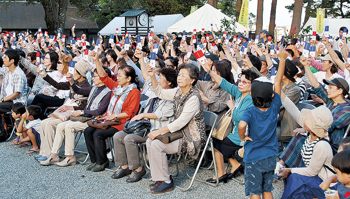 勝敗は、どちらのパフォーマンスが優れていたかを観客が色つきのカードで示して決定する。地元から出場した河野精一朗さん(ハナマサ)は、全国的なコンテストで入賞経験もあり、初出場で会場を沸かせたが惜しくも敗退。「完敗でしたが、すがすがしい」と観客からの熱い視線を思い出しながらコメント。杉崎尚人さん(御室流)は敗者復活から準決勝まで進出。「多くの人に花への関心を持ってもらえたのでは」と振り返った。