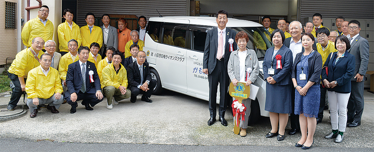 小田原白梅ライオンズクラブ(大滝靖生会長)が10月11日、NPO法人地域活動ホームかもめの家(安藤豊子理事長)に作業用車両1台を寄贈した。クラブ創立40周年記念事業の一環で、同法人への寄贈は4台目。