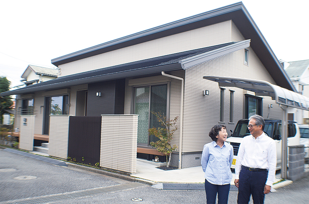 「歳をとると、どうしたって無理できなくなる。だから生活しやすいように」。3年前、平屋に建替えた南部芳隆さん(65)夫妻がこう話すには理由がある。2階建ての家は築30年が経過し、同じ間取りの隣家で暮らす両親の介護にも何かと不自由を感じた。階段の昇り降りや建具の高さ。トイレや廊下の幅一つとっても「車イスが通れるだけではダメ。そこから動作する余裕も考えないと」と妻の久代さん。何もない所ですらつまずく、立ち上がる動作も大変…。介護の実体験から暮らしやすさの重要性を痛感し、将来の生活スタイルを想像して、導きだした答えが平屋だった。