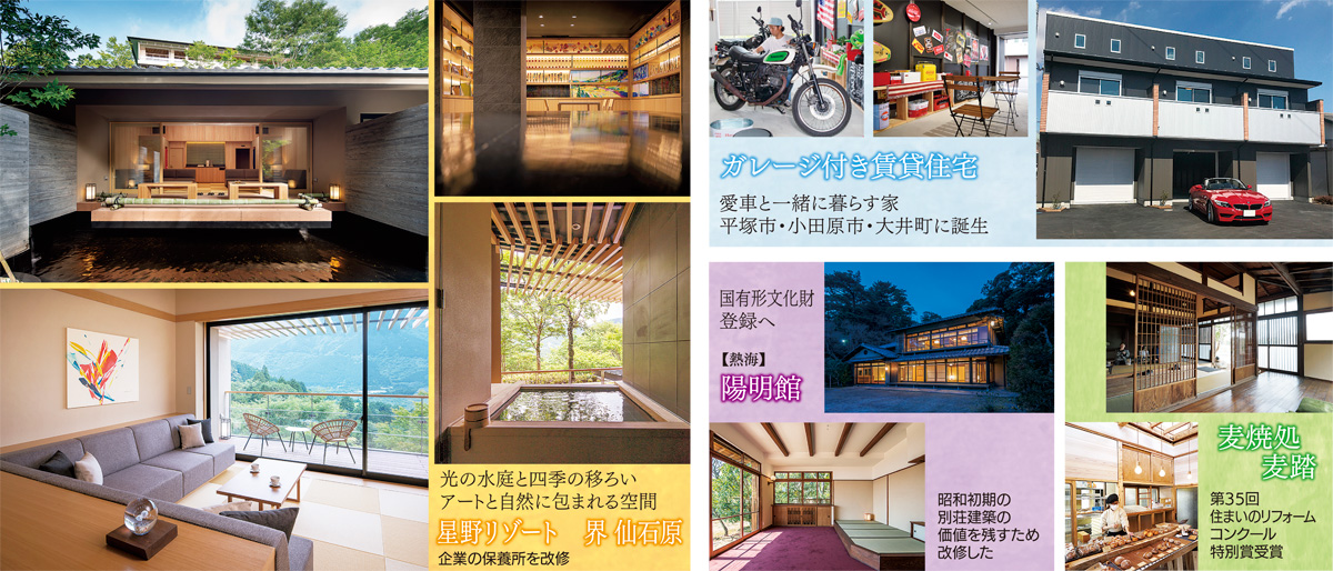 箱根町仙石原に昨年7月に開業した「星野リゾート 界 仙石原」は、雄大な自然に包まれた、アトリエ温泉旅館に。「憩い」と「アート」を見事に融合させた空間を生み出した。小田原市江之浦で空き家を改修したパン屋「麦焼処 麦踏」は、地域の人が集まる人気店に。第35回住まいのリフォームコンクールでは、全国474件の応募の中から特別賞に輝いている。さらに、100年先を見据えて改修した熱海「陽明館」が、このほど国の有形文化財への登録が決まった。
