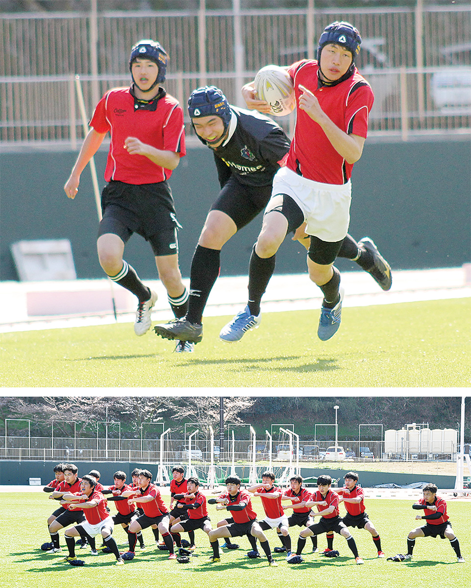 同部の工藤悠樹主将(SH(スクラムハーフ))は「新体制になって力がついてきたことを先輩たちに伝えらえた。応援を力に、春の大会では県ベスト4を目指して強くなっていきたい」と語り、試合後に先輩たちとエールを交換した。