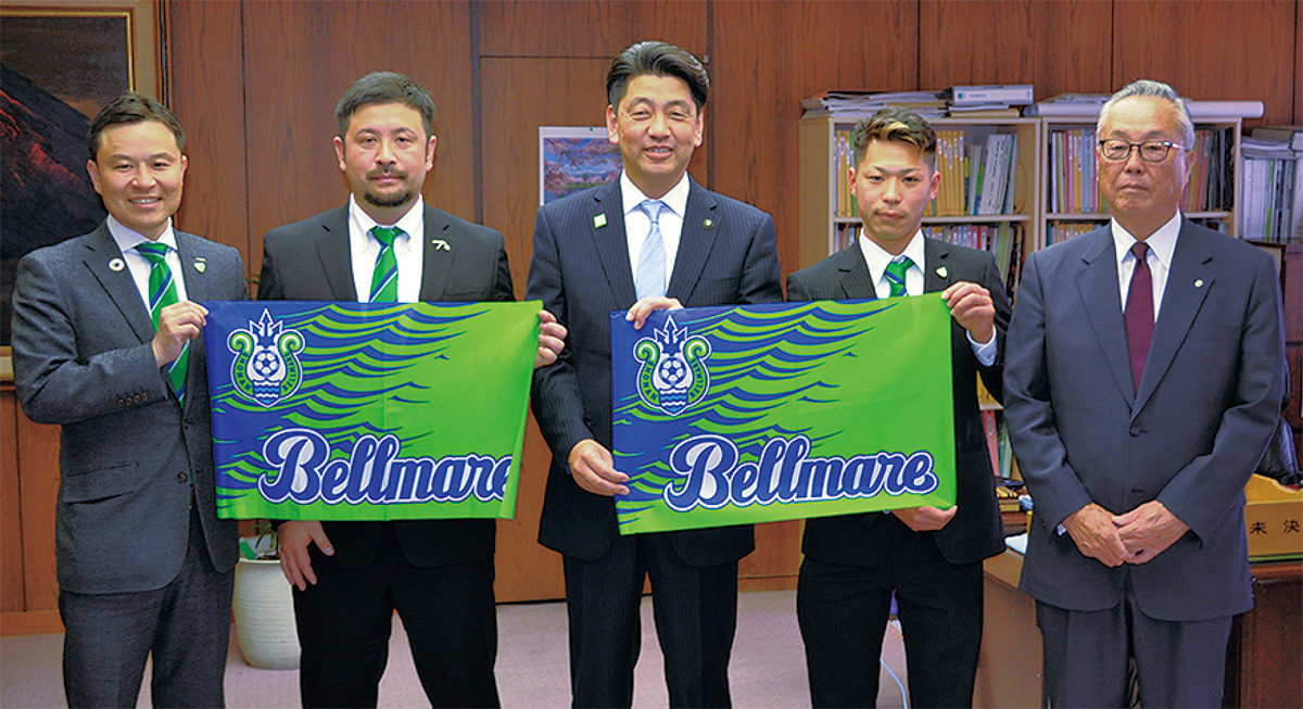 小田原市を拠点に日本フットサルリーグに参戦している湘南ベルマーレフットサルクラブの古川剛士代表取締役らが4月19日、小田原市役所で加藤憲一市長に新シーズンへの意気込みを語った。
