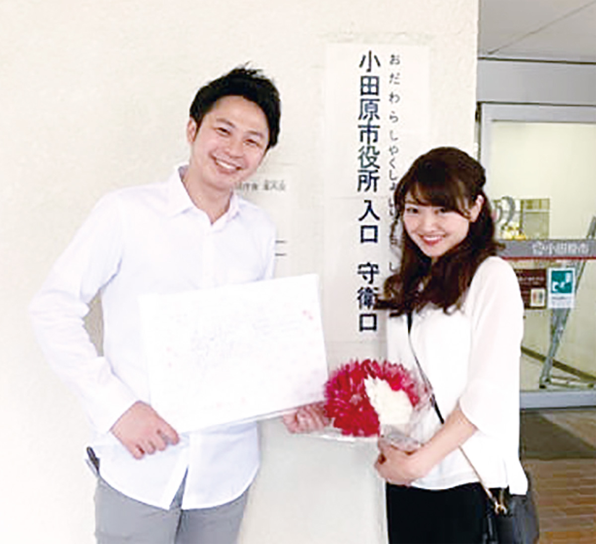 夕方4時ごろに小田原市役所を訪れた佐野誠さん(30)と彩羅さん(33)夫妻は、入籍も結婚式も引っ越しも、すべて5月1日に合わせたという。2人は「新しい時代のはじまりに、良い記念になりました」と声を弾ませた。