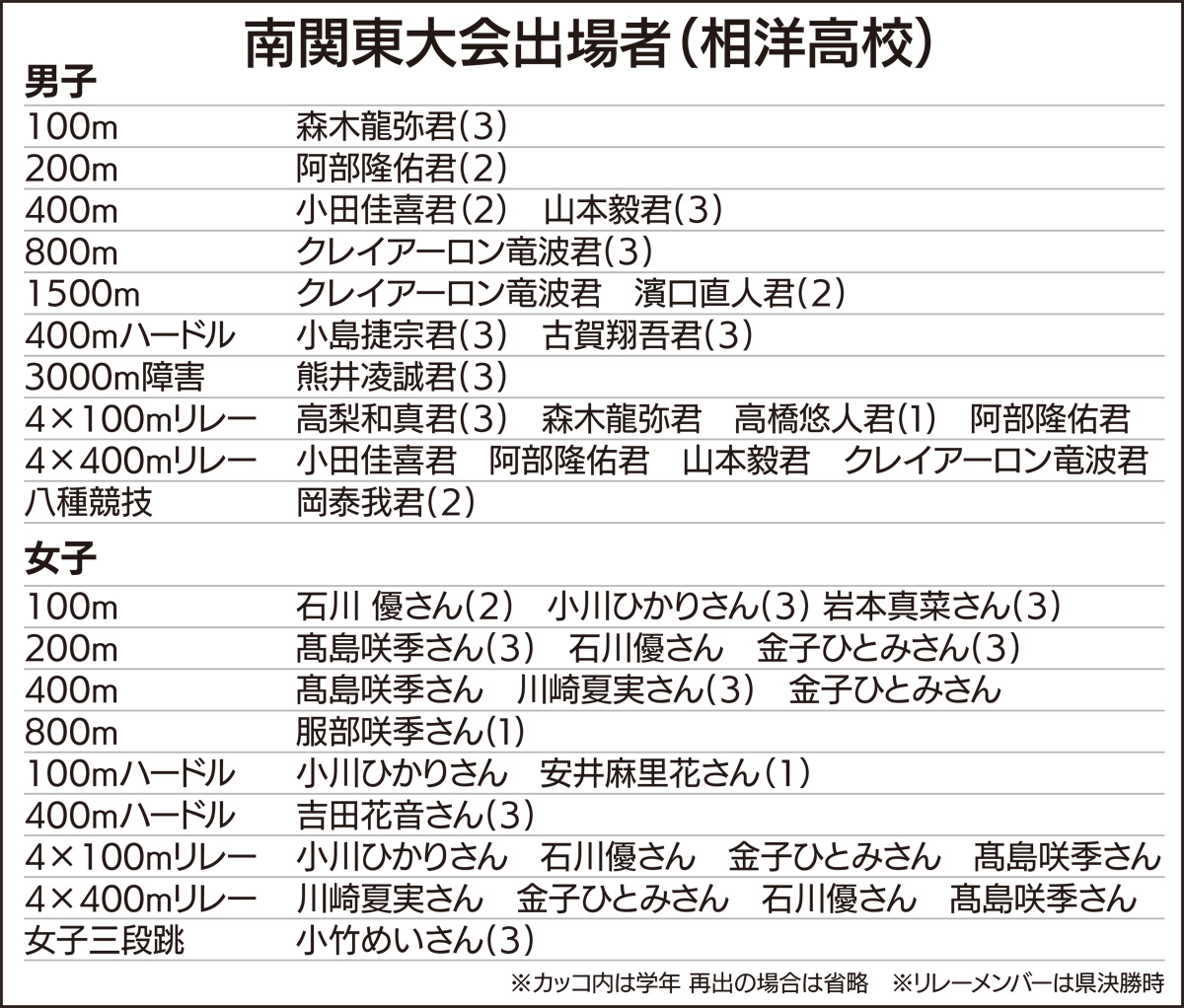 男女で伝統のリレー、各種目で南関東へ